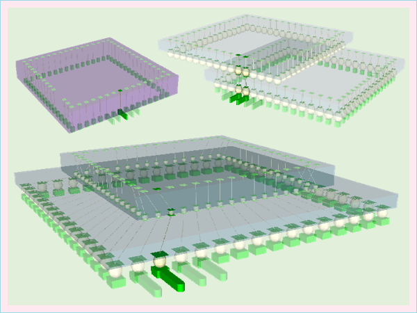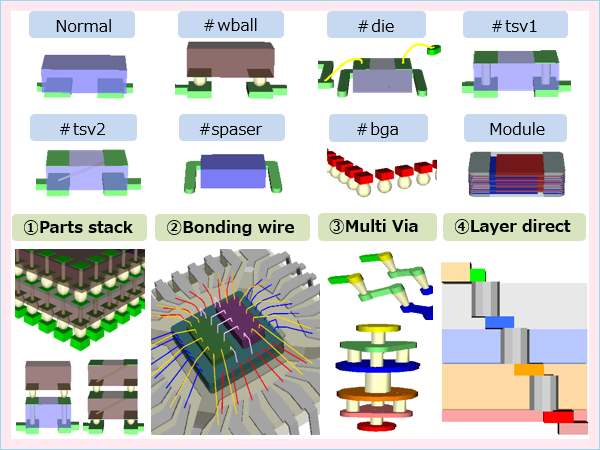 TSV型の部品スタックで、積層パッケージの接続を構成する事ができます。