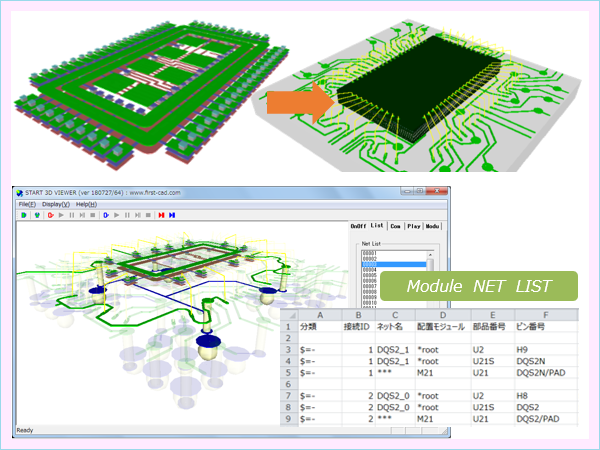 製造工程の異なるデバイスを三次元的に一つにまとめ、相互の接続ネット(モジュールネット)を抽出できます。