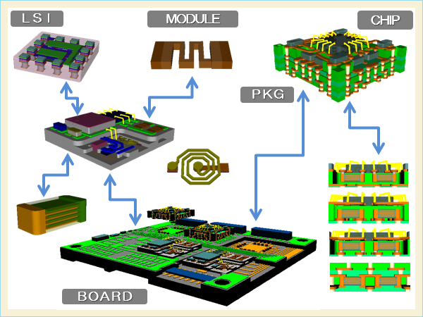 ■部品や他の基板を[モジュール]として合成する事ができます。 ■製造に必要な構造体用マスクデータを無制限で作成できます。 ■特殊外形、誘電体形状を3Dで出力し、シミュレーションデータとして利用できます。