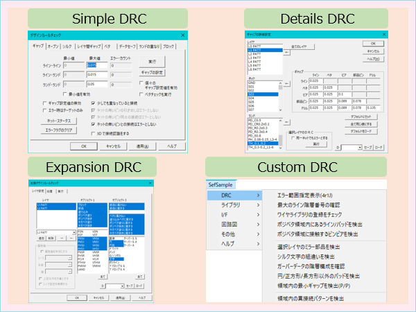オンラインで実行されるDRC(簡易/詳細)と、必要に応じて実行する拡張DRCの機能が装備されています。