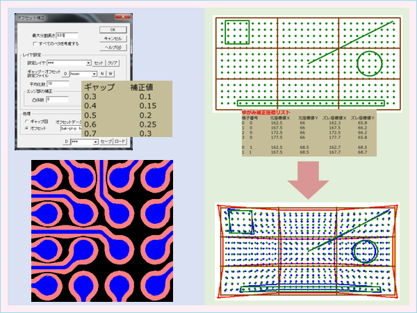◆補正機能:エッチング補正(オフセット補正) ⇒指定のベタパターンを、ギャップ値を考慮した補正量で一括補強します。