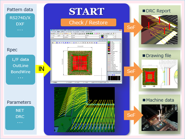 製造データ取込⇒DRC一括実行⇒結果レポート/図面出力