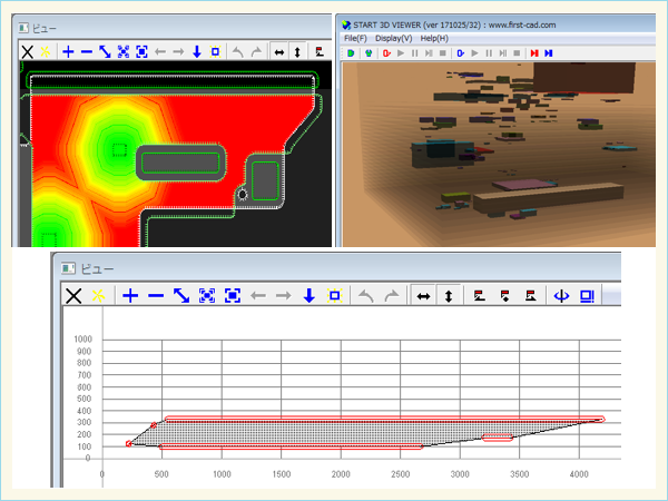 ■ グラフ、BMP表示、3Dビューワーなどで結果を表現でき、DRC機能などもそのまま利用できます。