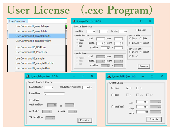 サンプルexe:レイヤ登録、ライブラリ登録、ベースパーツ作成など。