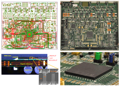 メモリチップ、Si-IP、ロジックチップが、有機インターポーザに三次元集積されており、チップ・パッケージ・ボードがSTARTの同一データ上に作成されています。